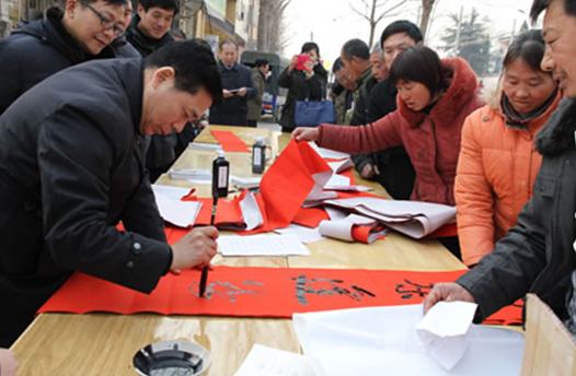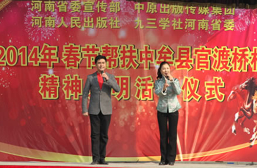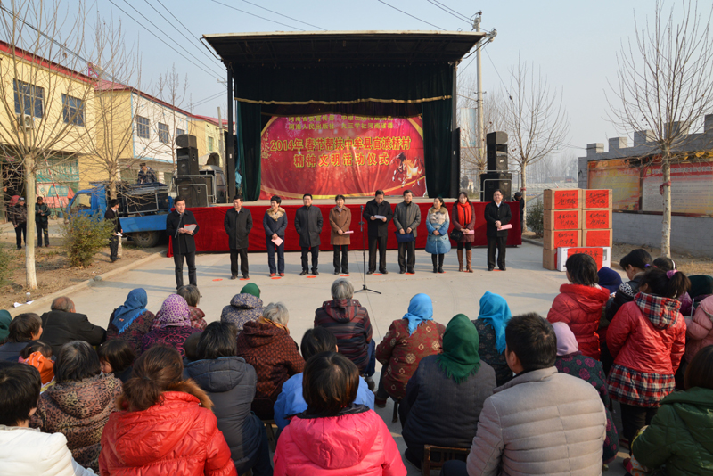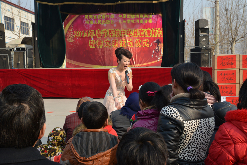 省委宣傳部副巡視員杜瑞明代表省直四家單位講了話,向官渡橋村村民送上節(jié)日的祝福。隨后,慰問團的領導向官渡橋村農(nóng)民群眾和小學生贈送了文體用品。由省委宣傳部邀請的薛青、郝曉冬等省內(nèi)多位知名演員為村民們表演了歌舞《田野里的春天》、豫劇《朝陽溝》選段、相聲《大腕研究》、嗩吶《百鳥朝鳳》等七個精彩的節(jié)目。在近兩個小時的演出中,臺上演員們精彩的表演,博得群眾的陣陣掌聲。省委宣傳部機關黨委專職副書記李憲林、創(chuàng)建處處長張德偉揮毫潑墨,現(xiàn)場為鄉(xiāng)親們義寫春聯(lián)。省九三學社邀請的省醫(yī)療專家為鄉(xiāng)親們傳播健康衛(wèi)生知識,現(xiàn)場檢查治療。中原出版集團和河南人民出版社為鄉(xiāng)親們贈送了科技圖書讓大家過春節(jié)時學習,整個慰問活動場面熱烈,氛圍濃厚。