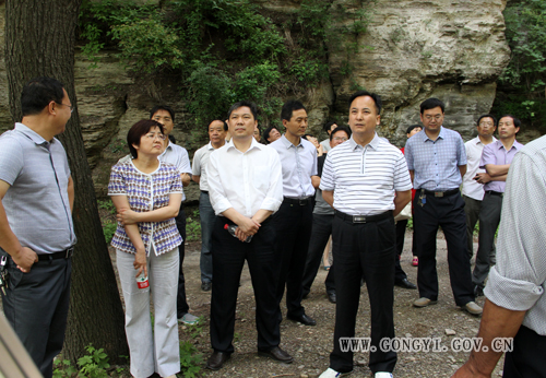 市委副書記馬志峰一行來到北莊村,用半天時間實地參觀了長916米的引水隧洞工程,親身感受了崎嶇艱險的引水山路,聽取了村黨支部書記楊小周帶領北莊村民克服困難鑿山引水的感人事跡。