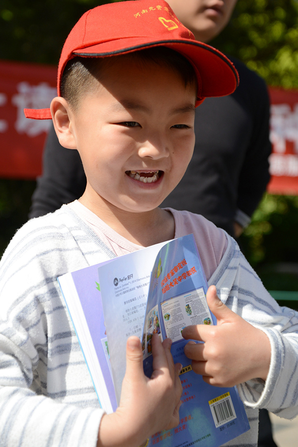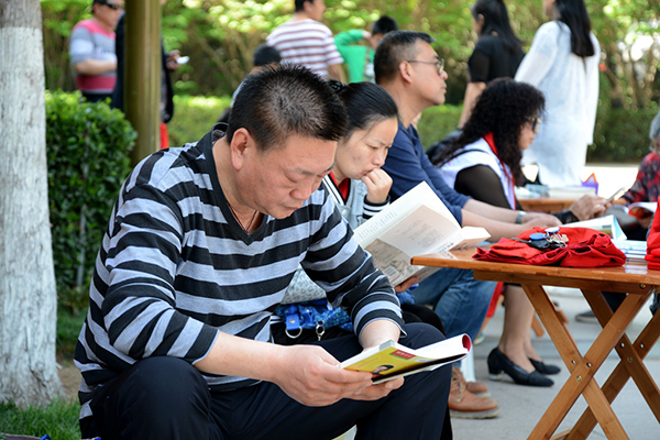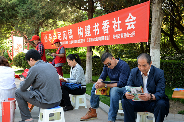 喜迎“世界讀書日” 鄭州紫荊山公園支起愛心書攤