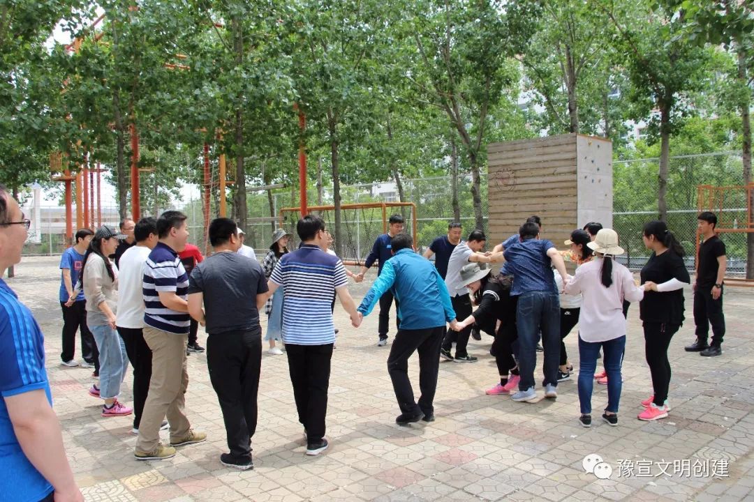 從一開始的團隊破冰,到考驗智慧和勇氣的互動游戲,大家相互配合、彼此信任,英姿颯爽、奮力拼搏。在“高空斷橋”項目中,隊員們爬上8米高空,躍過斷橋后折回,再從空中降落。當(dāng)有隊員面對高空遲疑害怕時,其他隊員都紛紛加油鼓勁,耐心等待,傳遞著集體溫暖的力量,最終所有隊員都順利完成了挑戰(zhàn)。